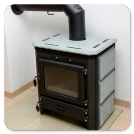 Durch die Specksteinverkleidung wird auch nach der letzten Holz Zuführung noch lange Wärme abgegeben.